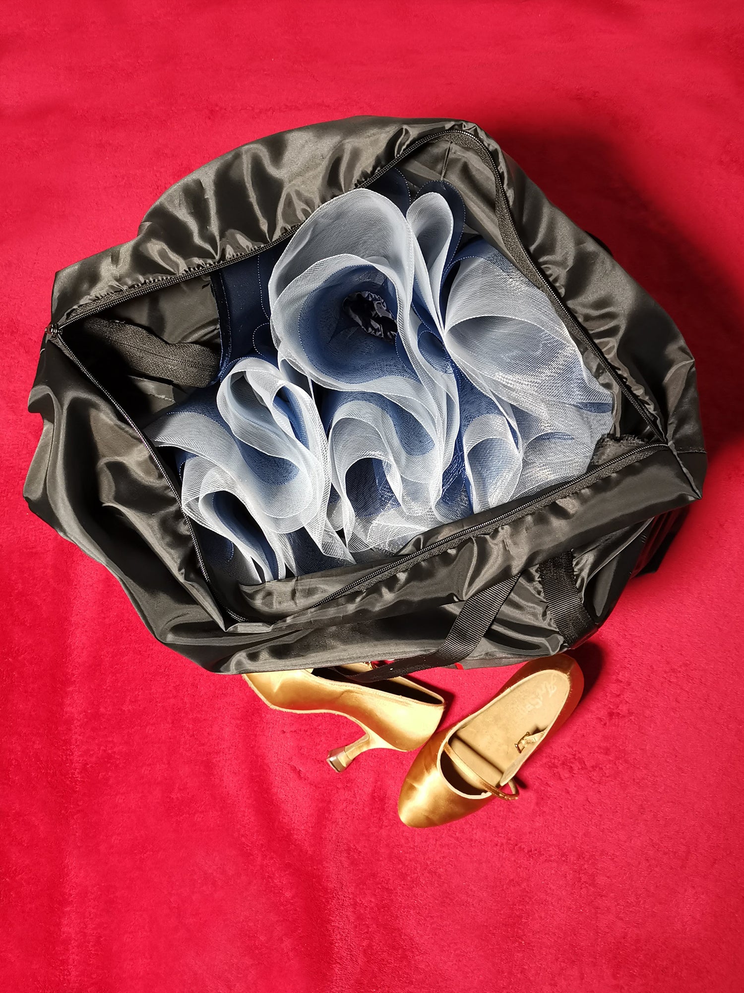 Our holdall is made by us from 100% polyester fabric very durable and heavy-duty zip. The bag is large enough to hold at least two competitive dance dresses with ease. The bag is very easy to clean because it can be washed in domestic washing machines.
