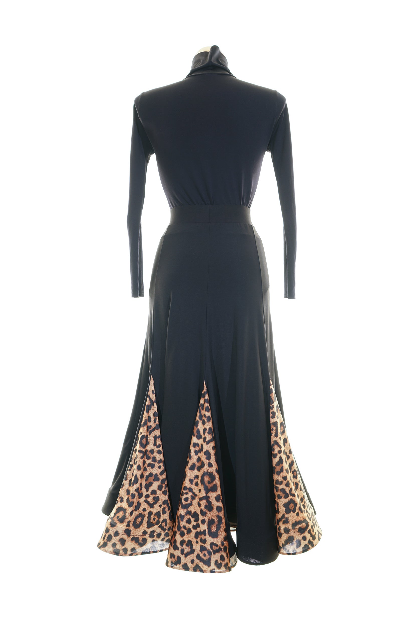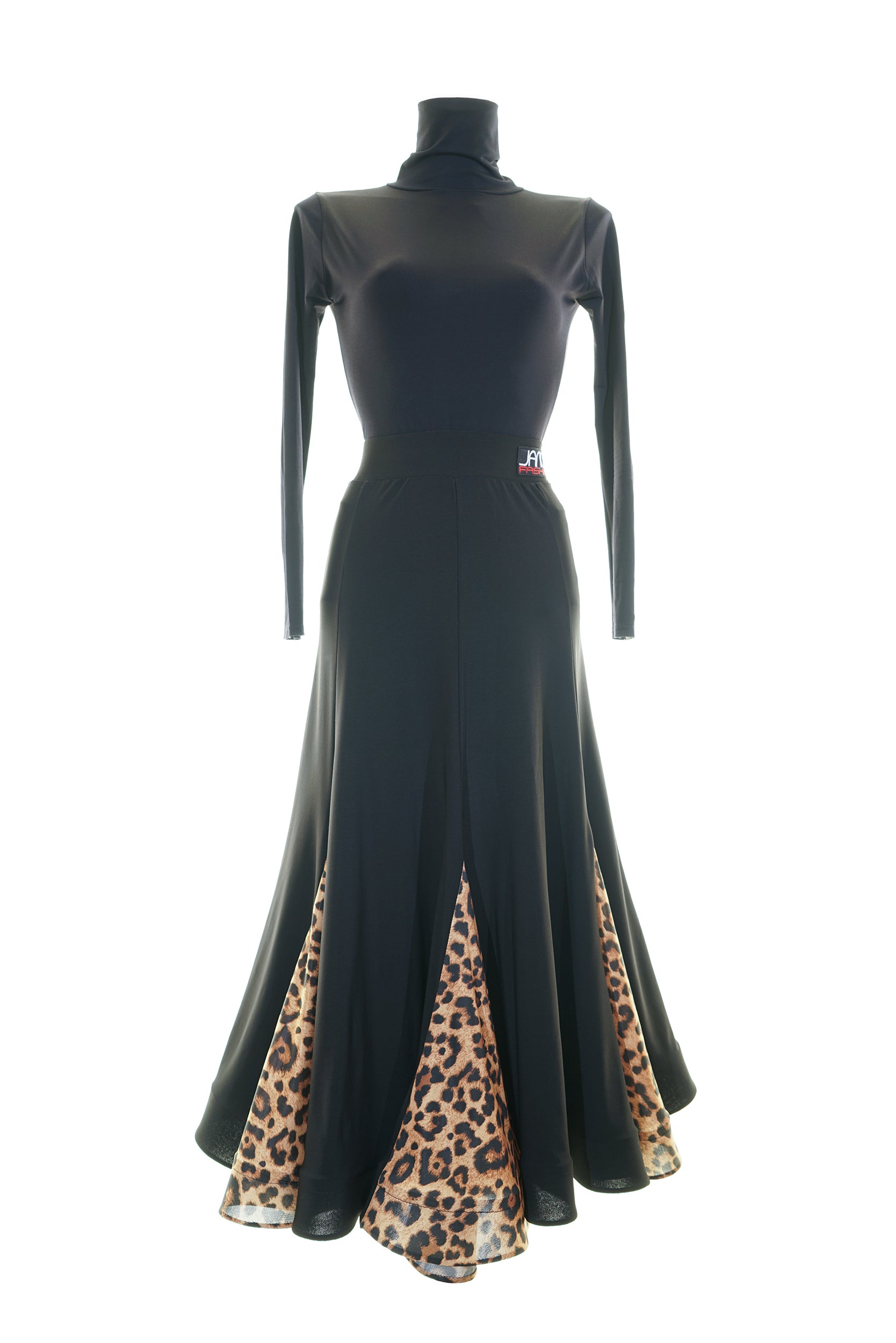 An elegant long skirt to make you shine on the dance floor. Made with the finest six panel black crepe and leopard godets. Waistband width being 5cm. Finished off with crinoline at the bottom for the stunning volume on the floor.